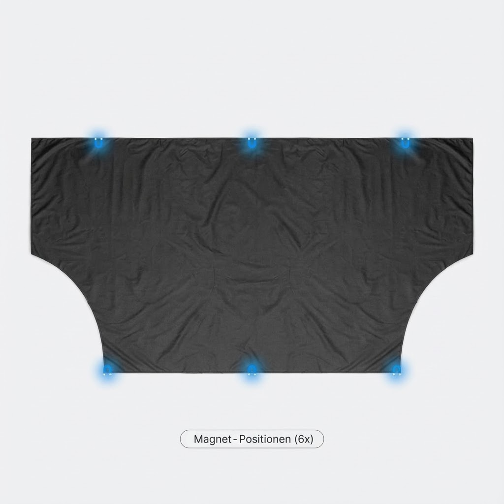🧲 Sturmfester Halt: Die Kombination aus integrierten Magneten (lackschonend eingearbeitet) und seitlichen Laschen sorgt dafür, dass die Abdeckung auch bei starkem Wind oder Sturm sicher auf der Scheibe liegen bleibt.