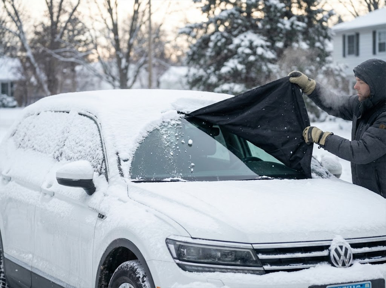 Das war mein größtes Problem bei extremen Minusgraden: Die alte Abdeckung fror selbst an der Scheibe fest. Durch das dicke, schwarze Material taut die mikroskopische Eisschicht darunter anscheinend leicht an, was das Abnehmen am Morgen extrem erleichtert. Ein Genuss, einfach abziehen und losfahren. Absolutes Must-have für Pendler.
